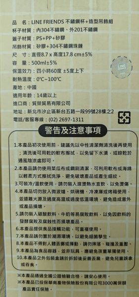 紀念品名稱:LINE FRIENDS不鏽鋼杯+造型吊飾組