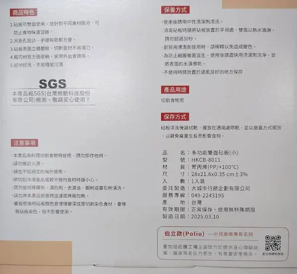紀念品名稱:多功能雙面砧板