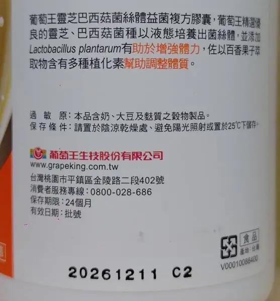 使用期限:2026/12/11。 來源:葡萄王