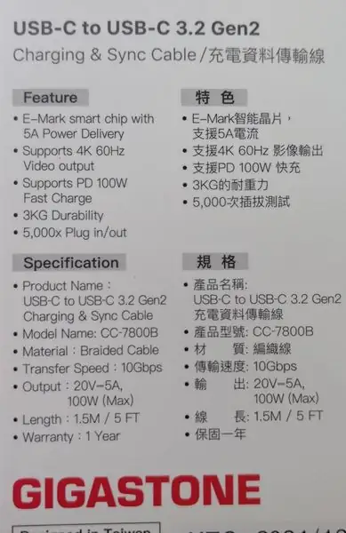 紀念品名稱:CC-7800B充電線