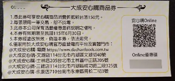 使用期限:2026/06/30。 來源:大成