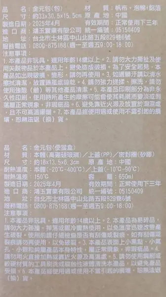 紀念品名稱:金元包(便當盒+包)