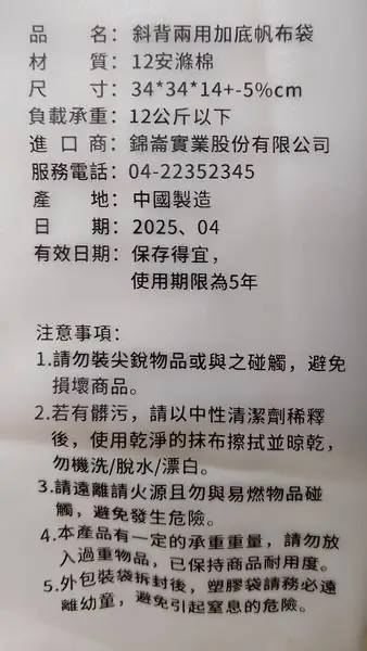 紀念品名稱:斜背兩用加底帆布袋