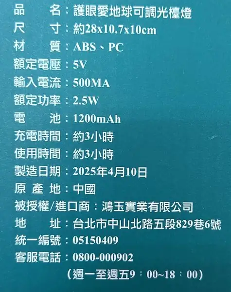 紀念品名稱:護眼愛地球可調光檯燈