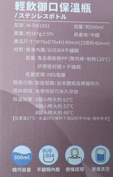紀念品名稱:輕飲御口保溫瓶300ml(2色選1)